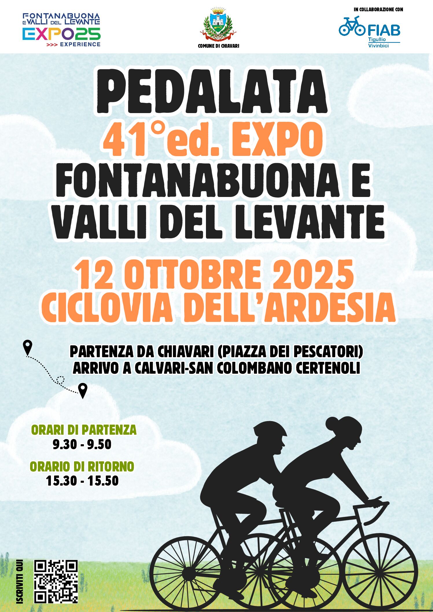 lconsultabili sul sito expo.genovametropoli.it L’iscrizione alla Pedalata Expo è online e richiede la compilazione di un modulo di registrazione reperibile mediante il QR Code presente nella locandina. Info su : expo.genovametropoli.it