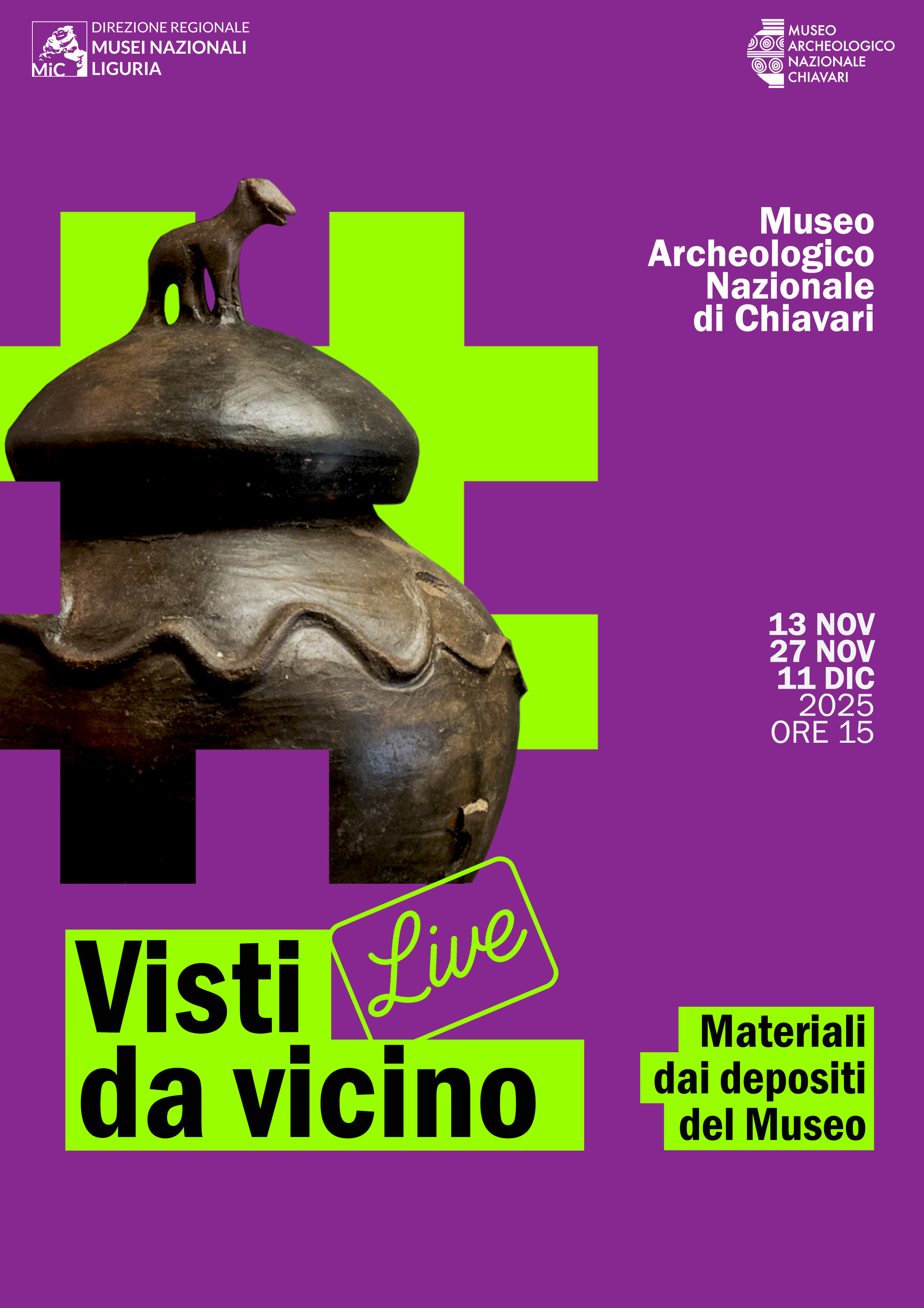 Il Museo Archeologico di Chiavari propone per novembre e dicembre #VistiDaVicino, un ciclo di incontri che porta il pubblico dietro le quinte del museo. Gli archeologi e il direttore del museo accompagneranno i visitatori alla scoperta della necropoli preromana di Chiavari e mostreranno da vicino alcuni corredi conservati nei depositi, raramente visibili.